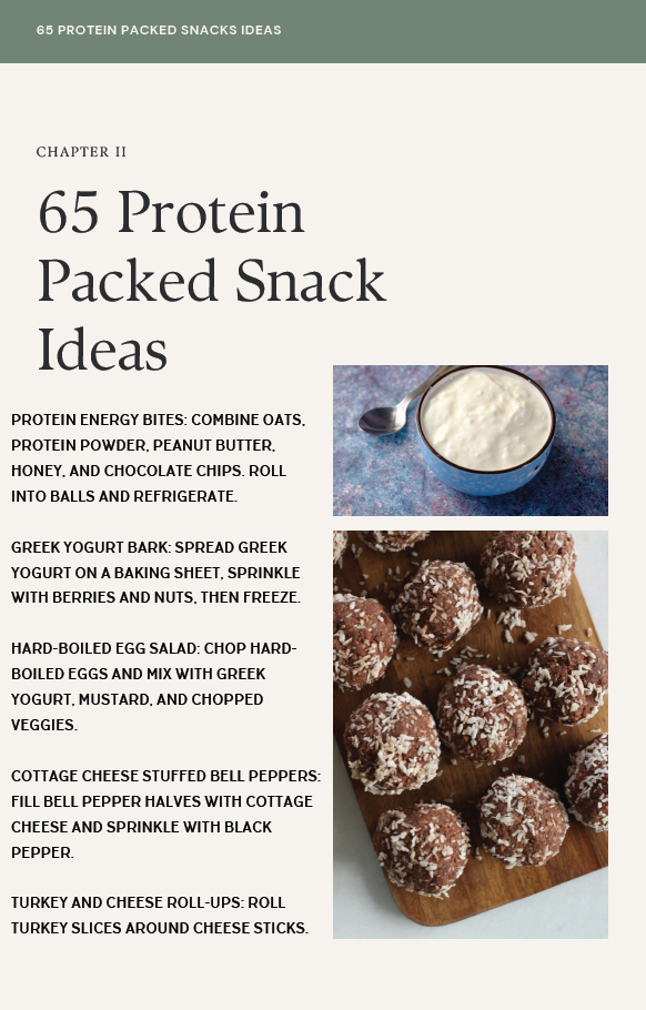 Discover 65 delicious, protein-packed snack recipes perfect for fitness enthusiasts and busy lifestyles. This ebook makes healthy snacking easy and tasty, helping you fuel your body, build muscle, and stay energized throughout the day. Start your healthy eating journey now!